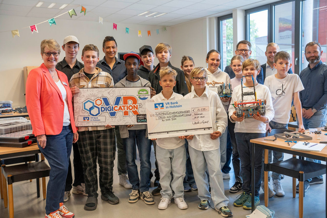 Bis heute hat die VR Bank in Holstein elf Schulen in ihrem Geschäftsgebiet gefördert. Im Falle der Grund- und Gemeinschaftsschule an der Bek wurden neben Robotik-Equipment ein sogenannter