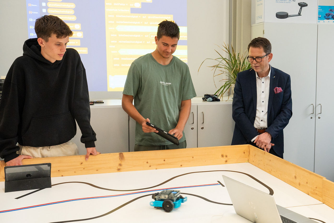 Im Informatikunterricht werden die zwei angeschafften Robotiksätze eingesetzt, um dort erste Lernschritte im Programmieren zu bewerkstelligen. Diese werden mit den höheren Jahrgangsstufen jeweils erweitert und ausgebaut.